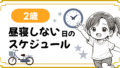 2歳の理想の睡眠時間は11〜14時間くらいと言われるので、「少し足りてないのかな?」と思うこともあります。